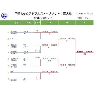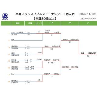 早朝ミックスダブルストーナメント【合計80歳以上】