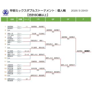 - 種目: ミックスダブルス/合計80歳以上