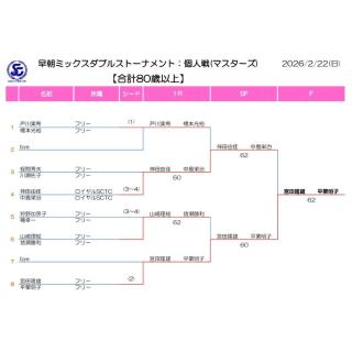 早朝ミックスダブルストーナメント マスターズ【合計80歳以上】